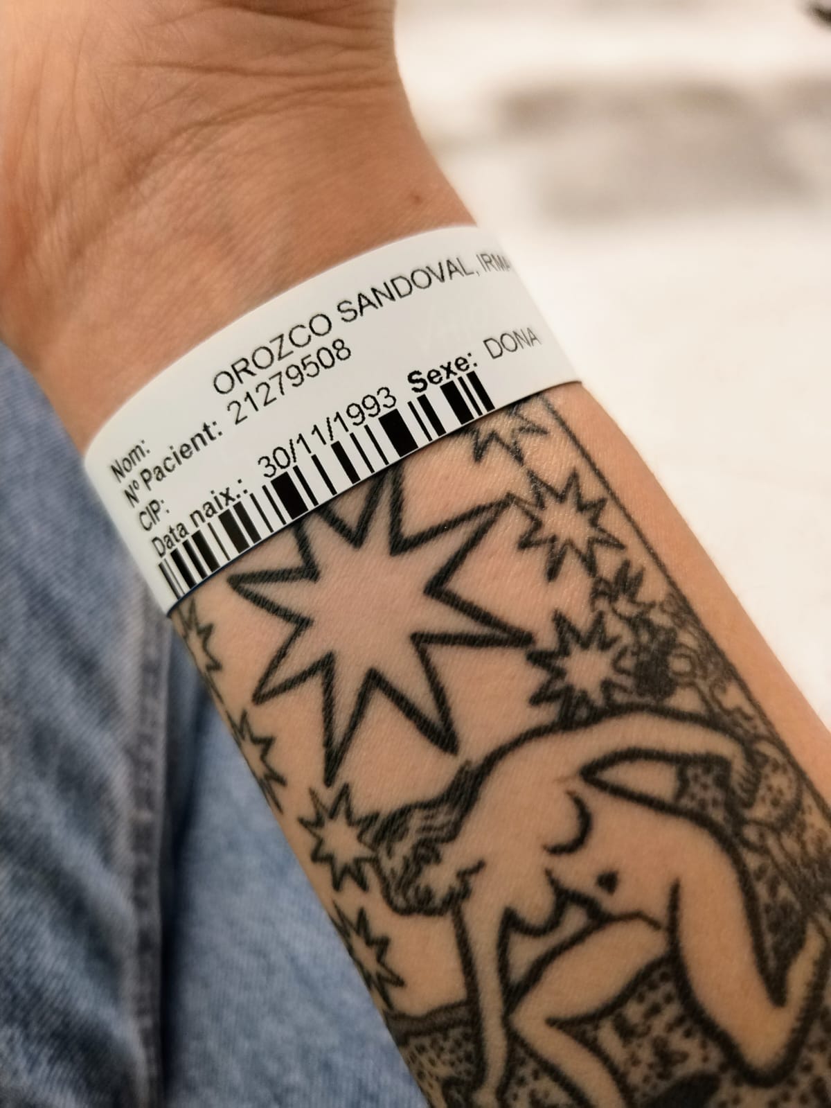 Llegué a mediodía al Hospital Vall d’Hebron, un sitio lleno de letreros azul marino. En la ventanilla de urgencias, referí mi situación al joven recepcionista. Tomó mi pasaporte, indagó por el seguro médico. “No tengo”, respondí. “Pero si es de México, qué raro. Siempre viajan con seguro”. Pues preséntemelos, pensé, gritándole algo muy mexicano para mis adentros. El joven extendió una tirita de plástico: “Hay que ponérsela”. Mis reacciones eran torpes por los nervios, el oído me punzaba. Tomé la tirita e intenté pegarla a mi muñeca. “Es como la de los festivales. ¡Fácil!”, gritó el de la ventanilla. Otro chico en uniforme que recién llegaba a entregar un paquete se apiadó de mí: “¿Puedo?”.